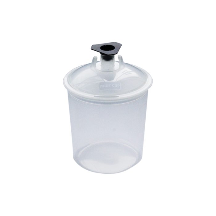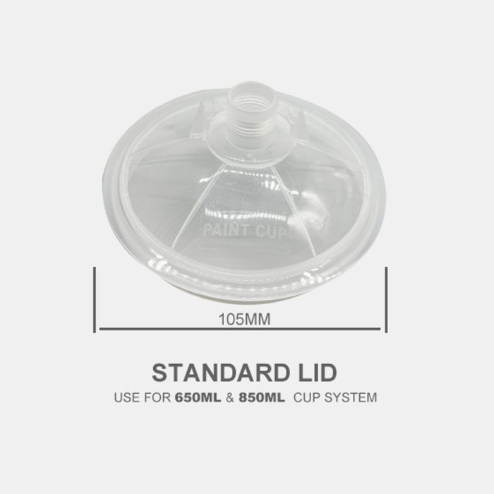 Step 4: If the paint is not required immediately you can seal the lid using the small black caps provided or after fitting the appropriate Voodoo Adaptor to your gravity gun. Simply turn the gun over, push down on the cup and lock it on with a half turn.
