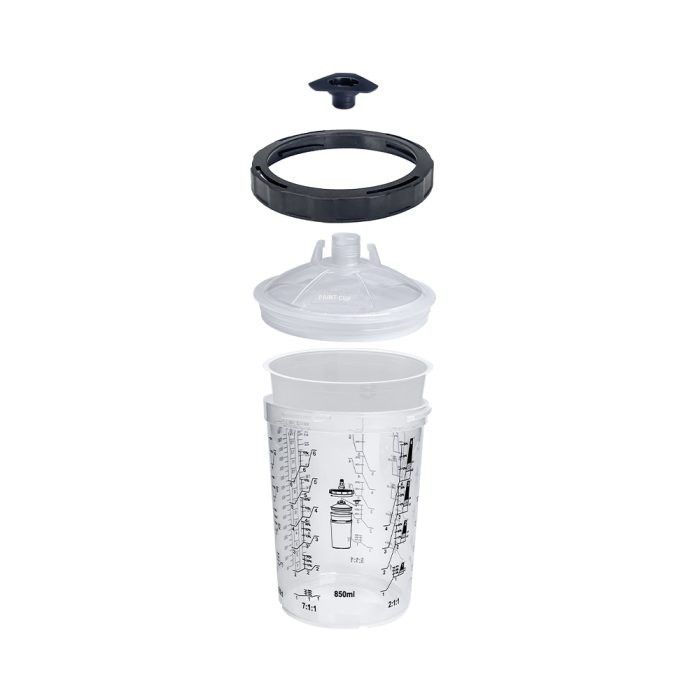 50 x 850mL Cups with 125um Filter lids. 20xCaps, 1 Graduation Holder & Collar